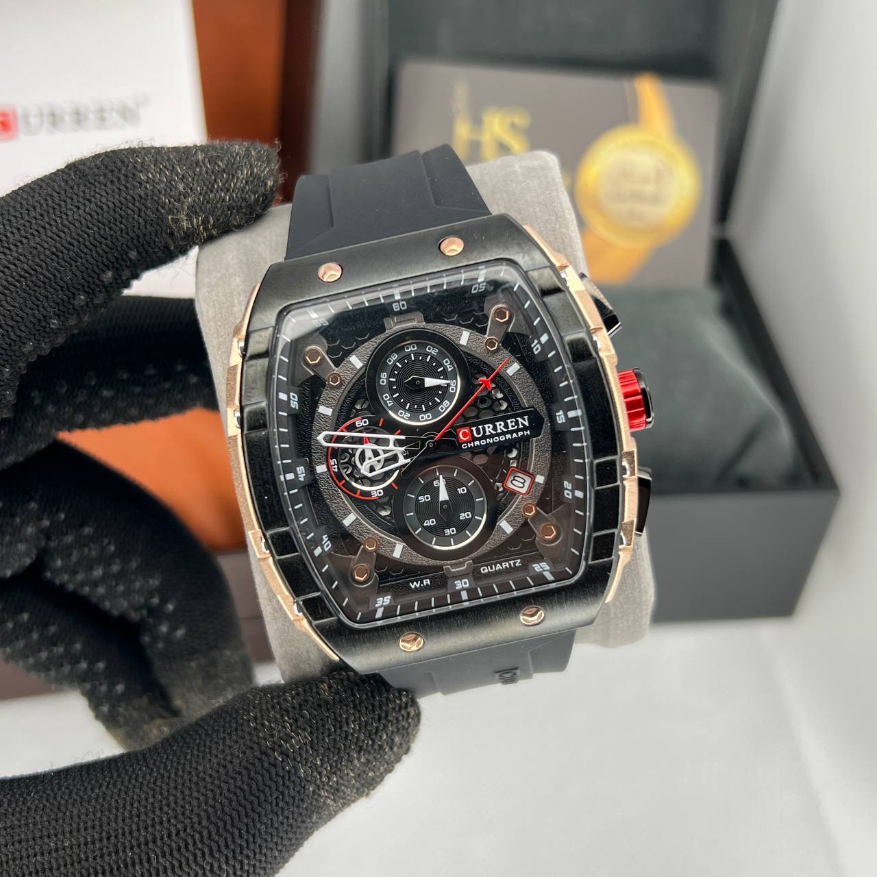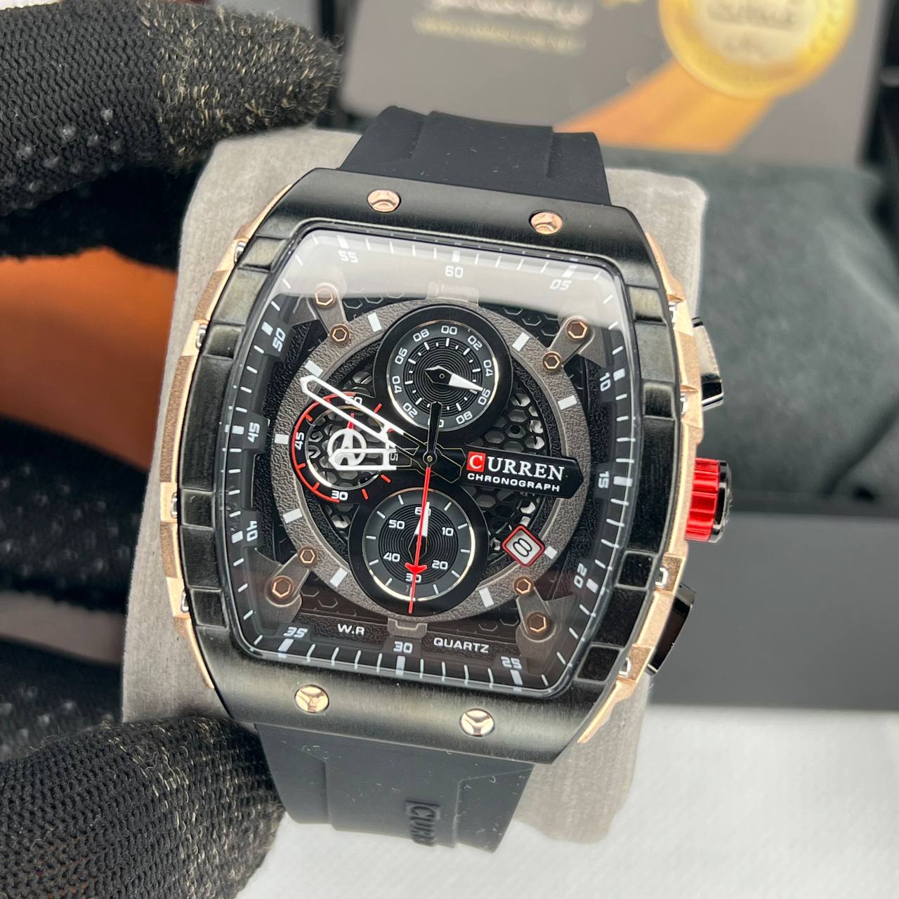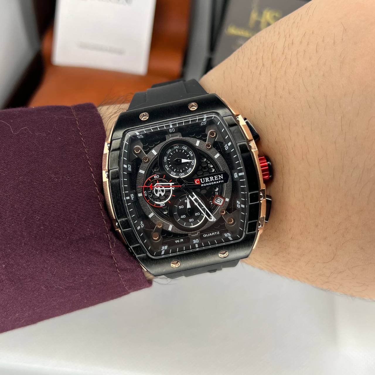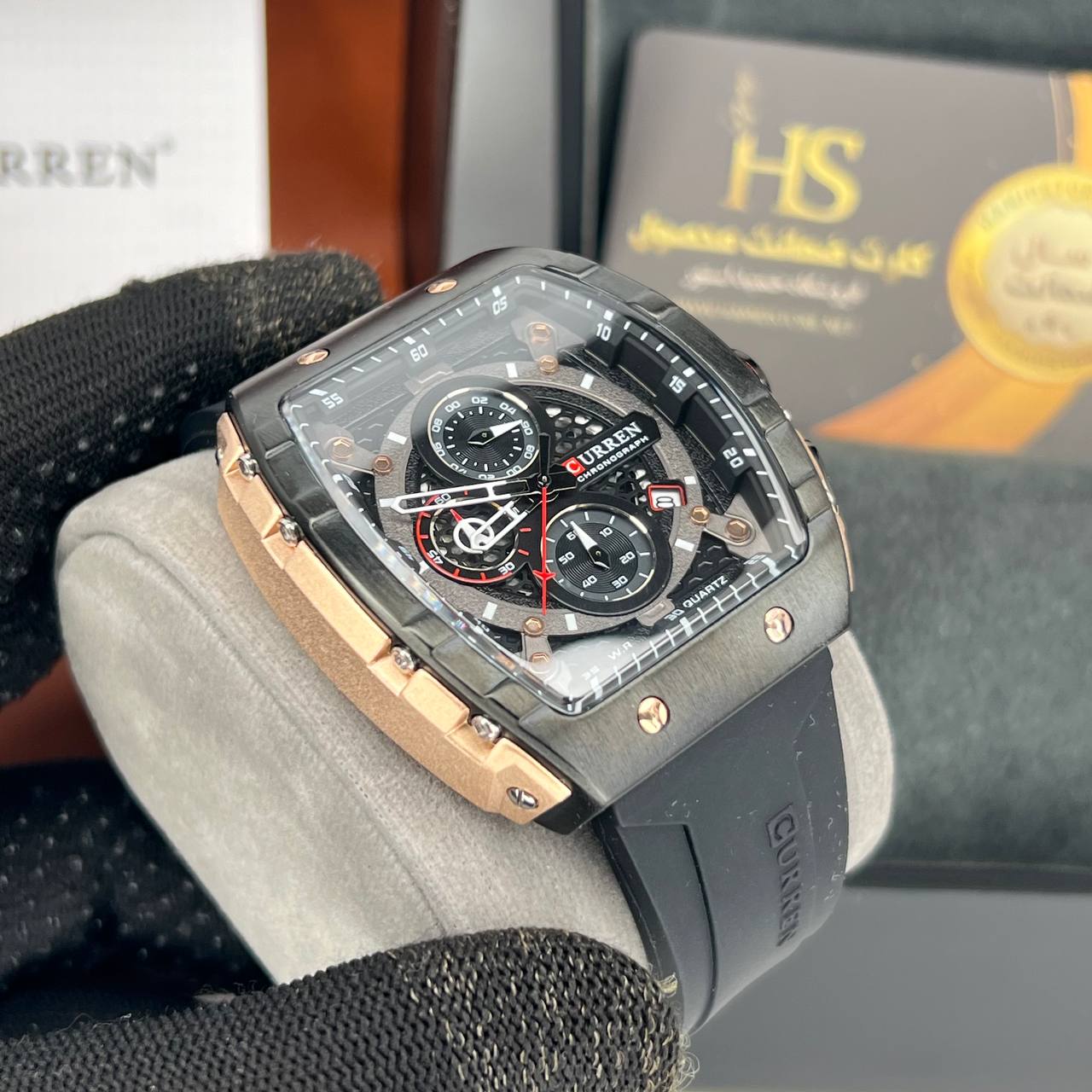 ساعت مچی کارن CURREN مردانه مدل 8442 کرنوگراف سه موتوره بند مشکی دور گلد