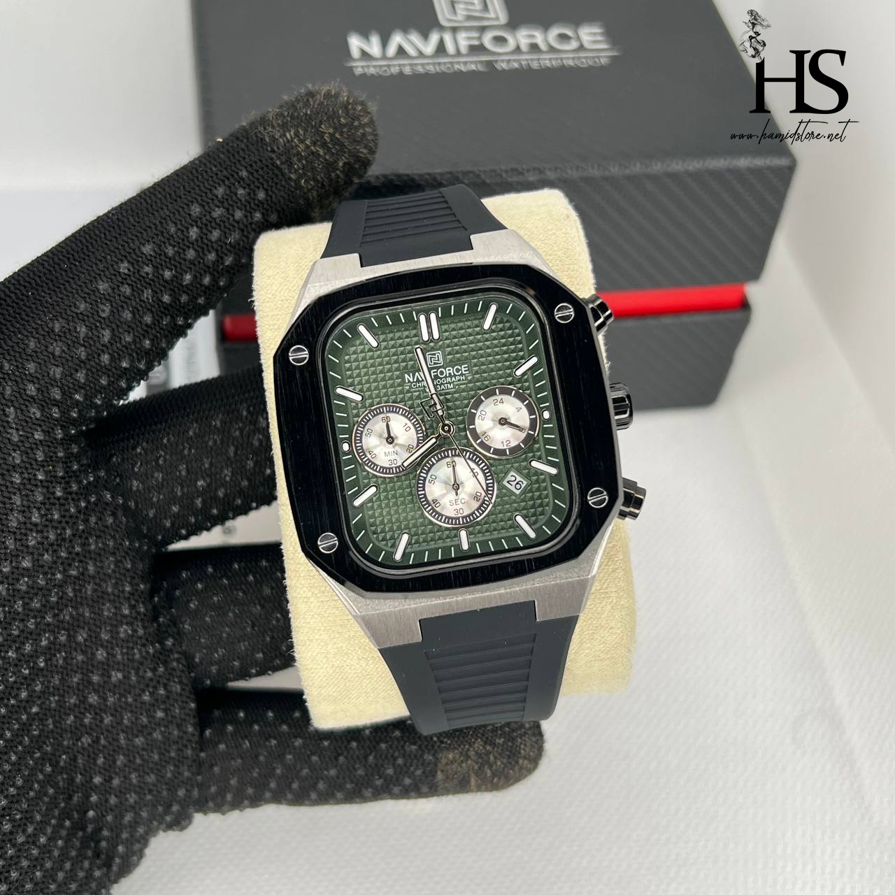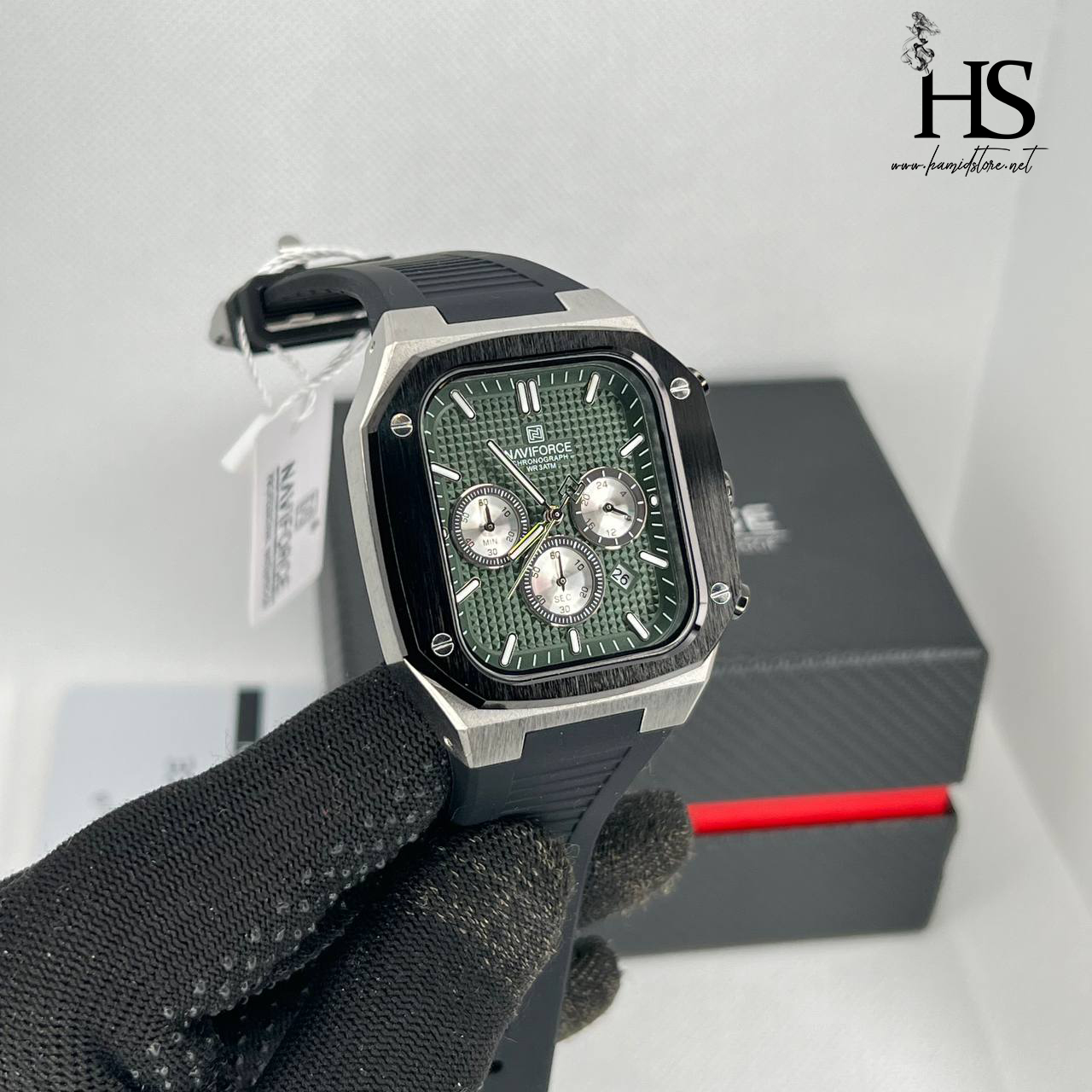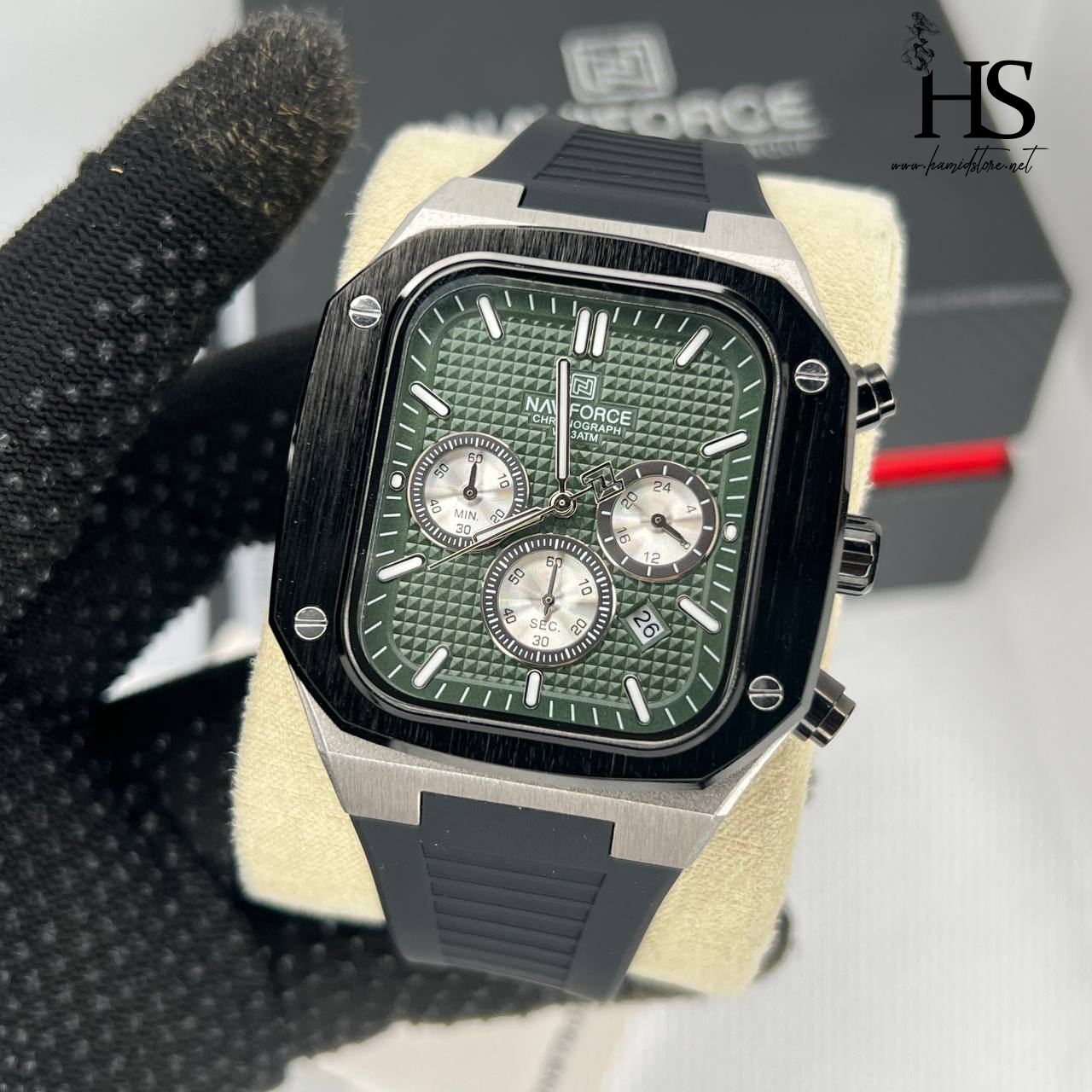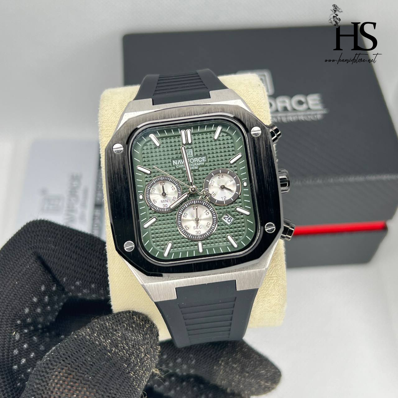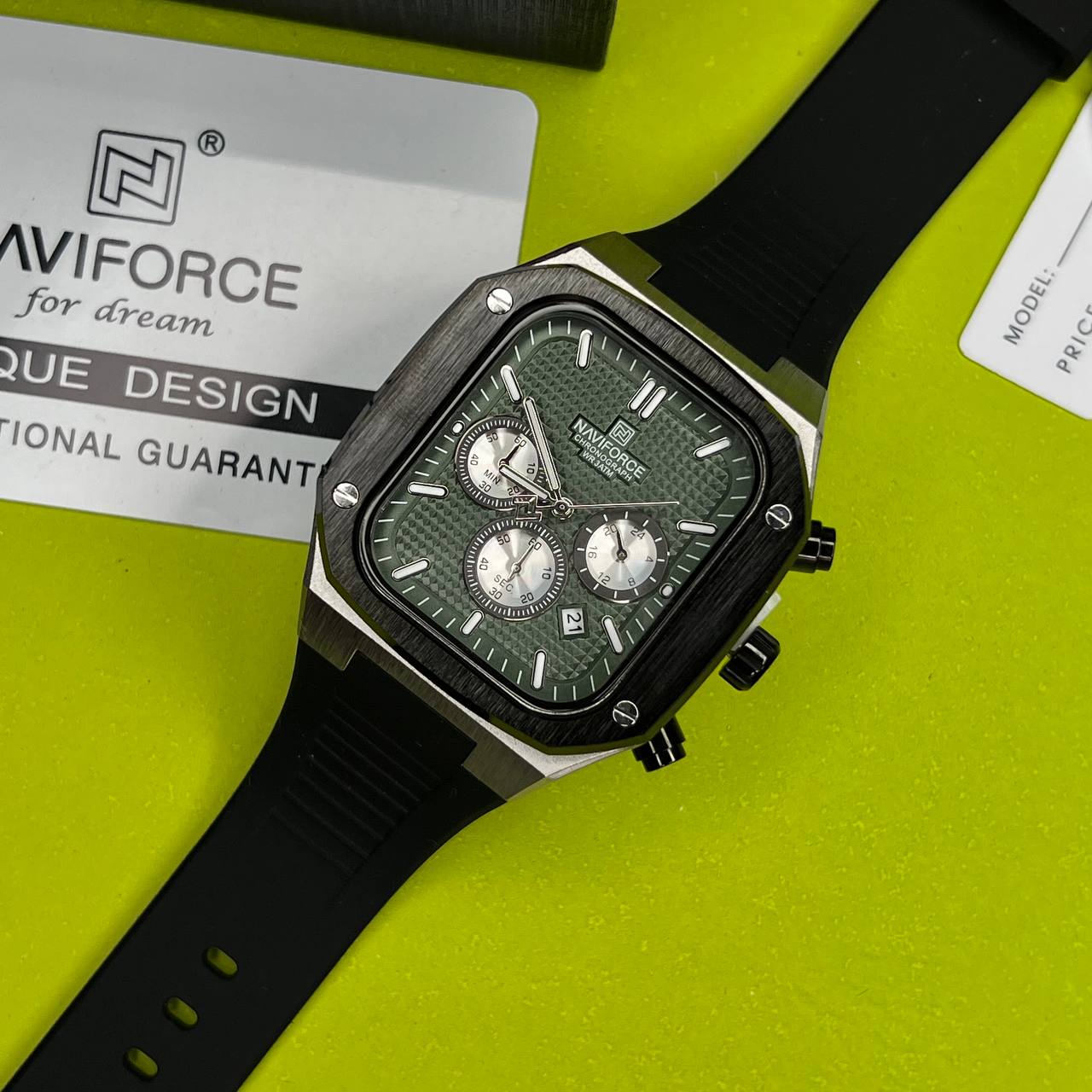 ساعت مچی عقربه ای مردانه NAVIFORCE نیوی فورس مدل SGNB صفحه سبز ا NF8037