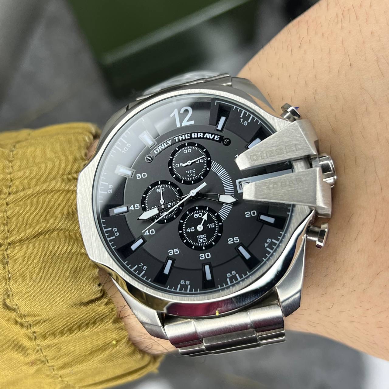 ساعت دیزل شاخدار نقره ای صفحه مشکی اورجینال مدل DZ-4360