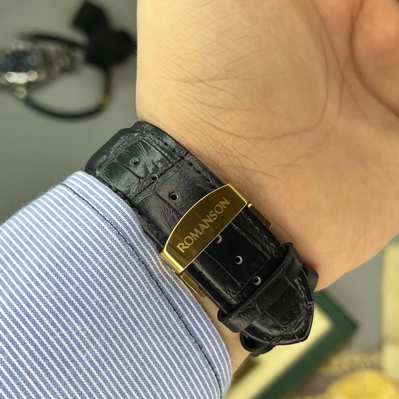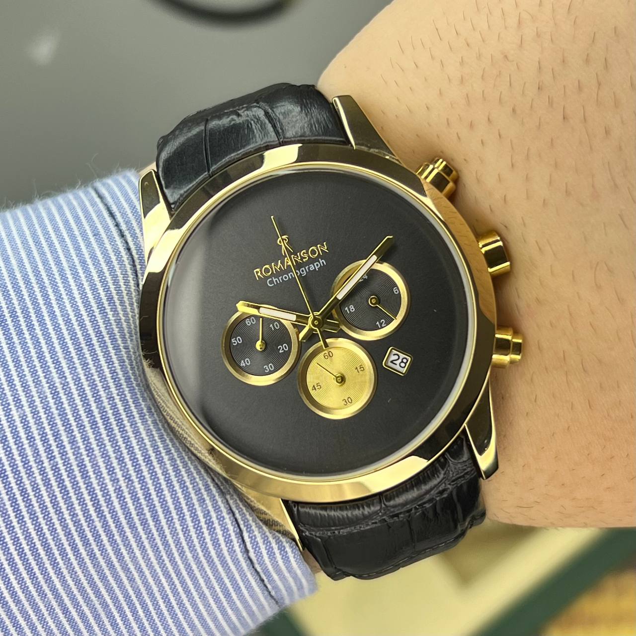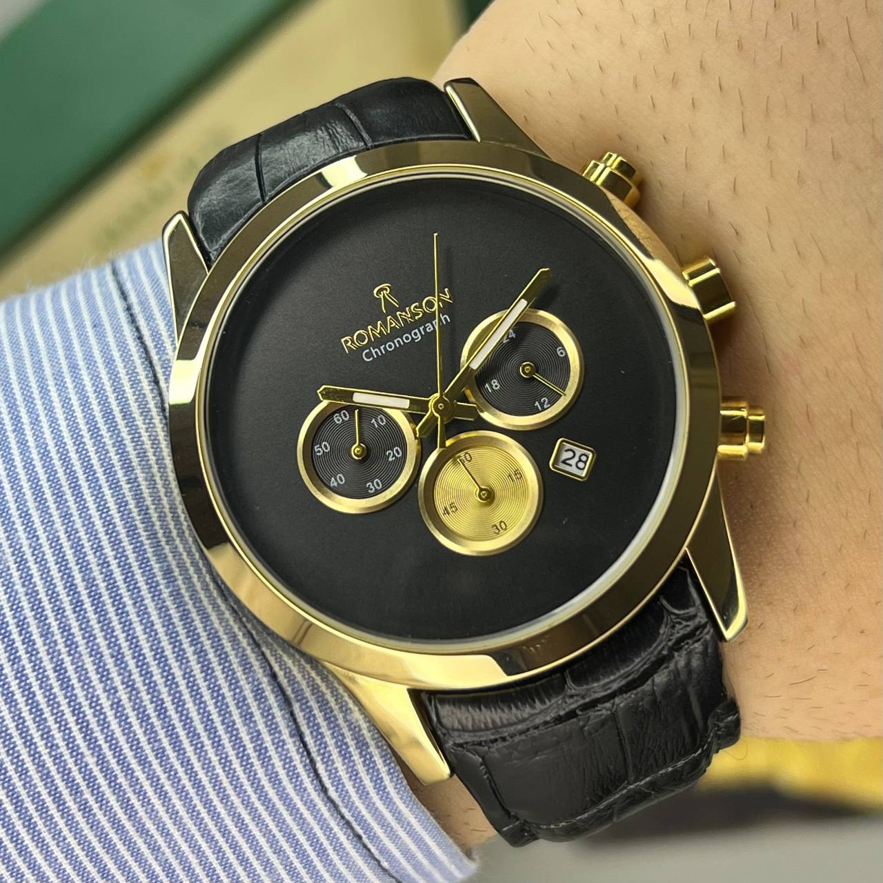 ساعت مچی رومانسون مردانه بند چرم کرنوگراف فعال قفل ضامن دار ROMANSON