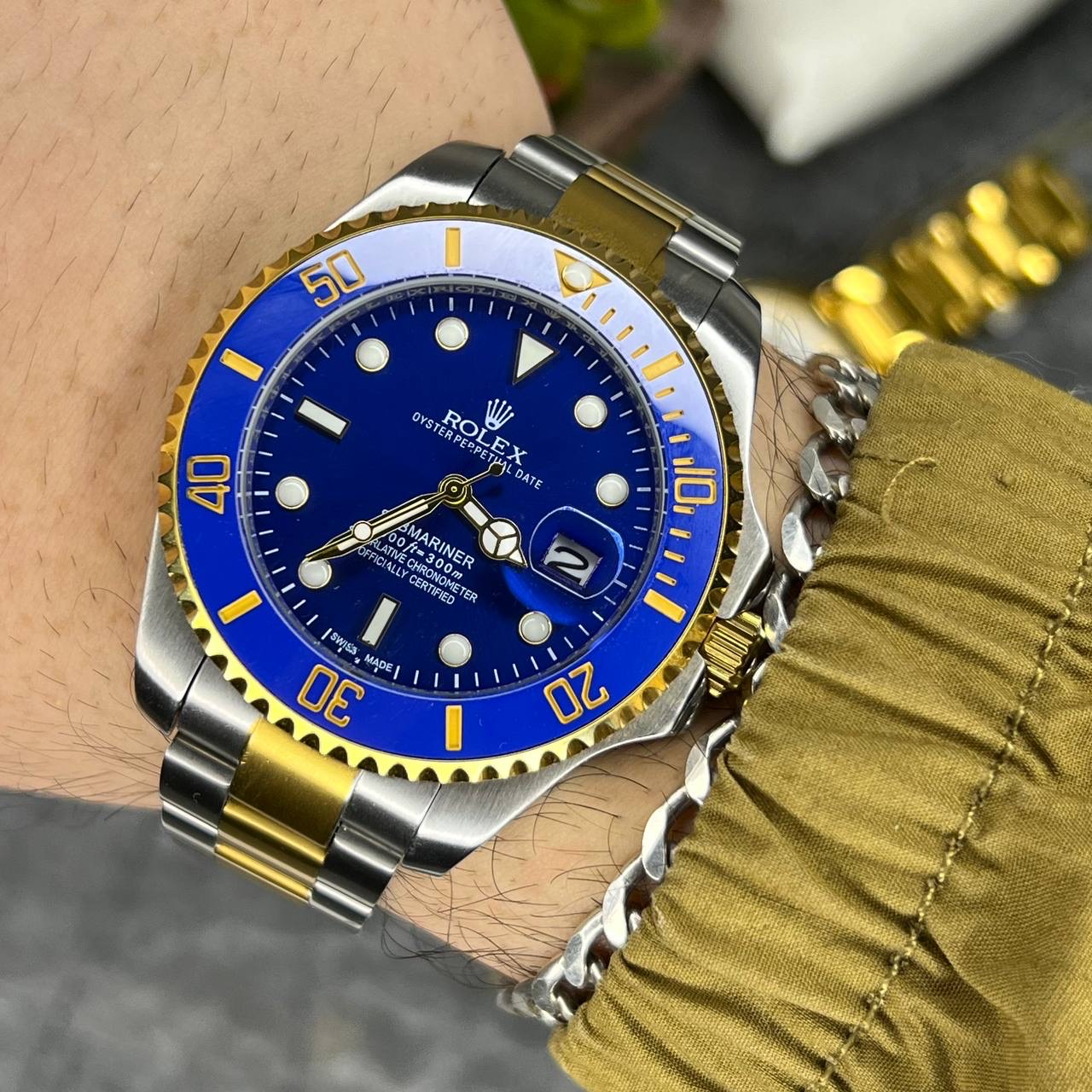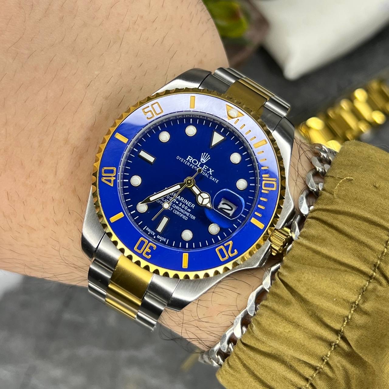 ساعت رولکس مردانه سابمارینر صفحه آبی بند طلایی نقره ای Rolex Submariner