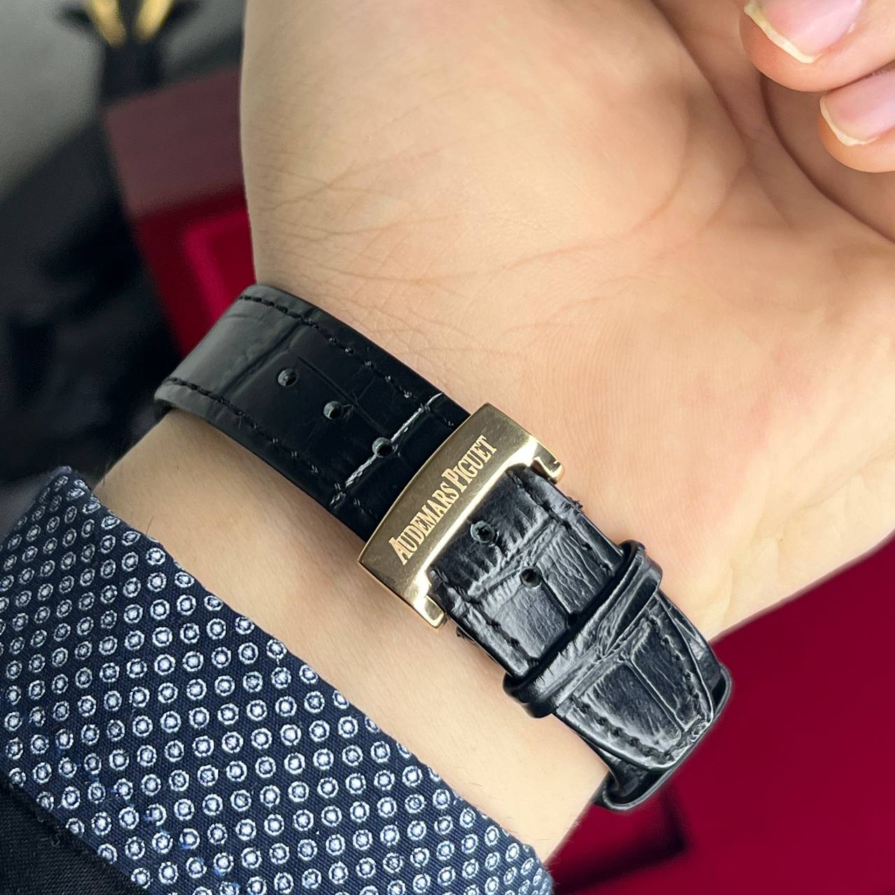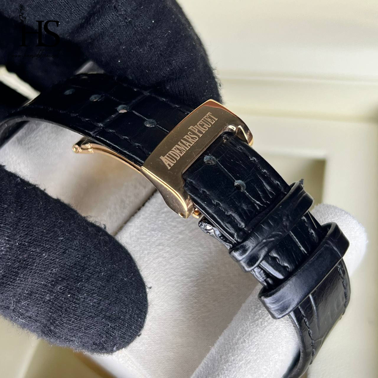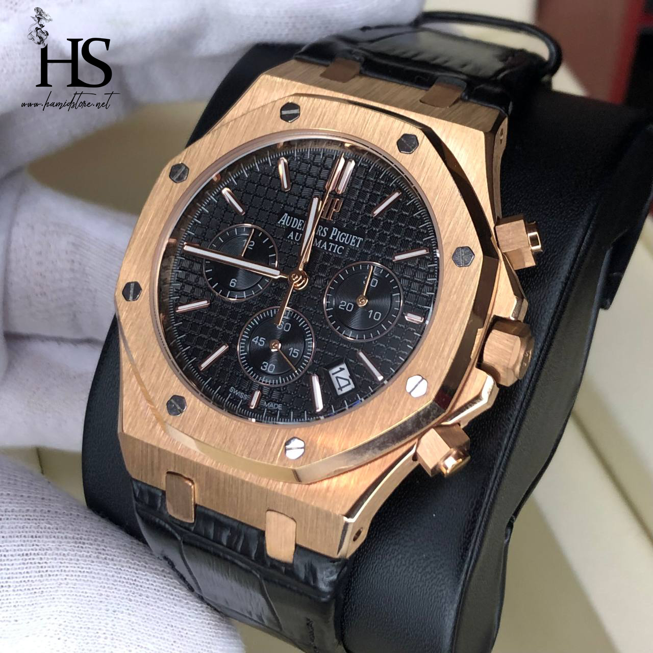 ساعت مردانه AP Chrono leather Rosegold Black کورنو رزگلد صفحه مشکی بند چرمی