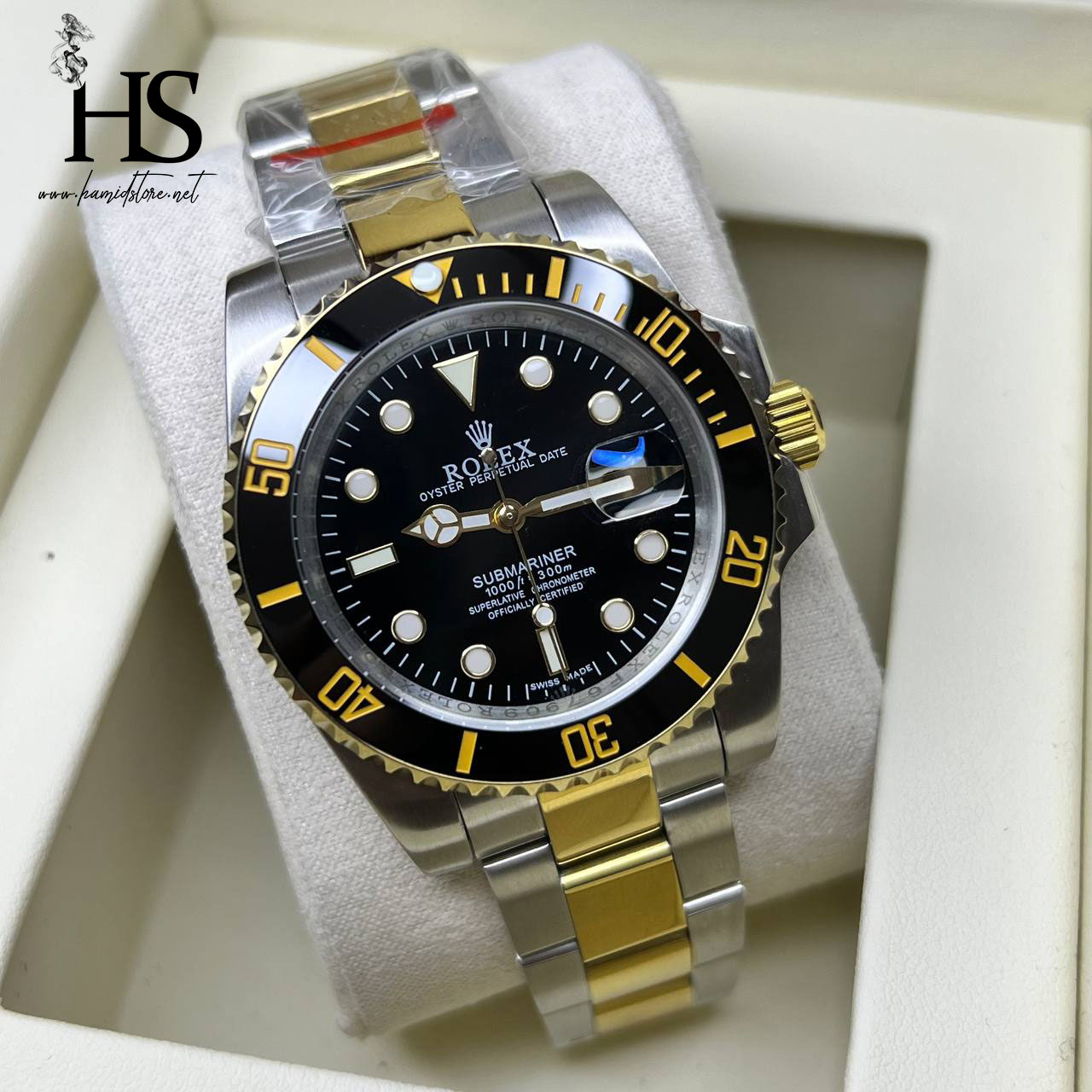ساعت مردانه رولکس مدل ساب مارین یکی از اصیل ترین مدل های خانوادهی مشهور رولکس با بیشترین طرفدار در دنیا میباشد.موتور این ساعت اتوماتیک تک موتور ژاپن میباشد. جنس بند نیز استینلس استیل ضد رنگ و ضد حساسیت بوده ،جنس شیشه و قاب این ساعت به ترتیب از مینرال گلس با کیفیت و استینلس استیل ضد زنگ و ضد حساسیت میباشد .صفحه این ساعت زیبا ابی رنگ میباشد.رنگ بدنه استیل دورنگ طلایی میباشد.این مدل رولکس در رده اسپرت کزوال میباشد و با ست های کلاسیک هم به زیبایی روی مچ دست میدرخشد.جنس قاب سرامیک ابی رنگ بسیار جذاب میباشد.موتور این ساعت از نوع اتومات بوده و دارای تقویم میباشند