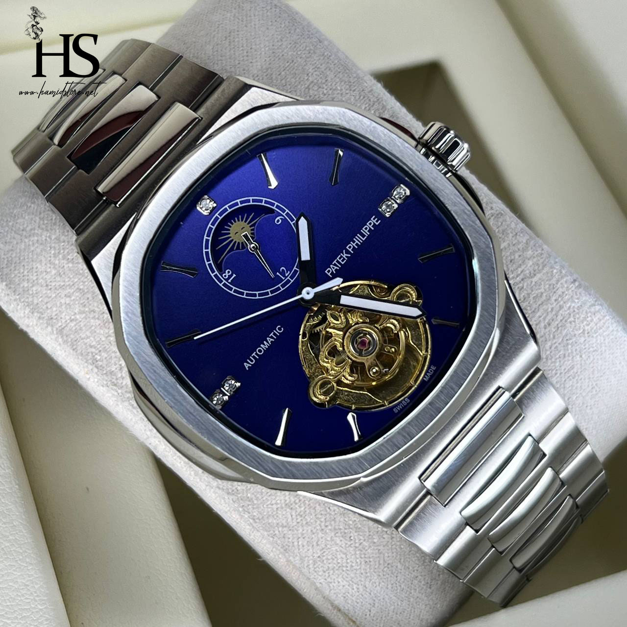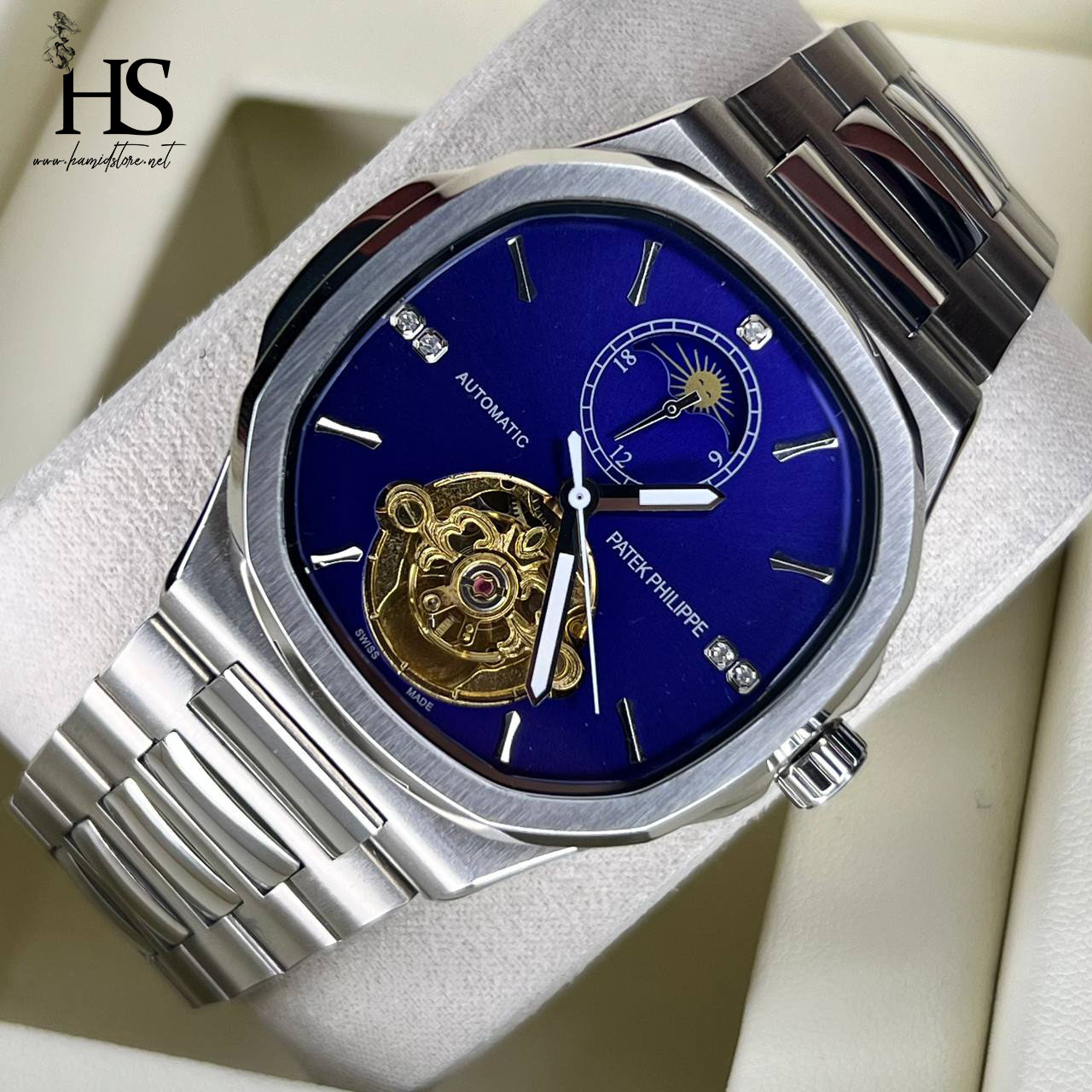 ساعت مردانه پتک فیلیپ صفحه سرمه ای سیلور Patek Philippe Automatic