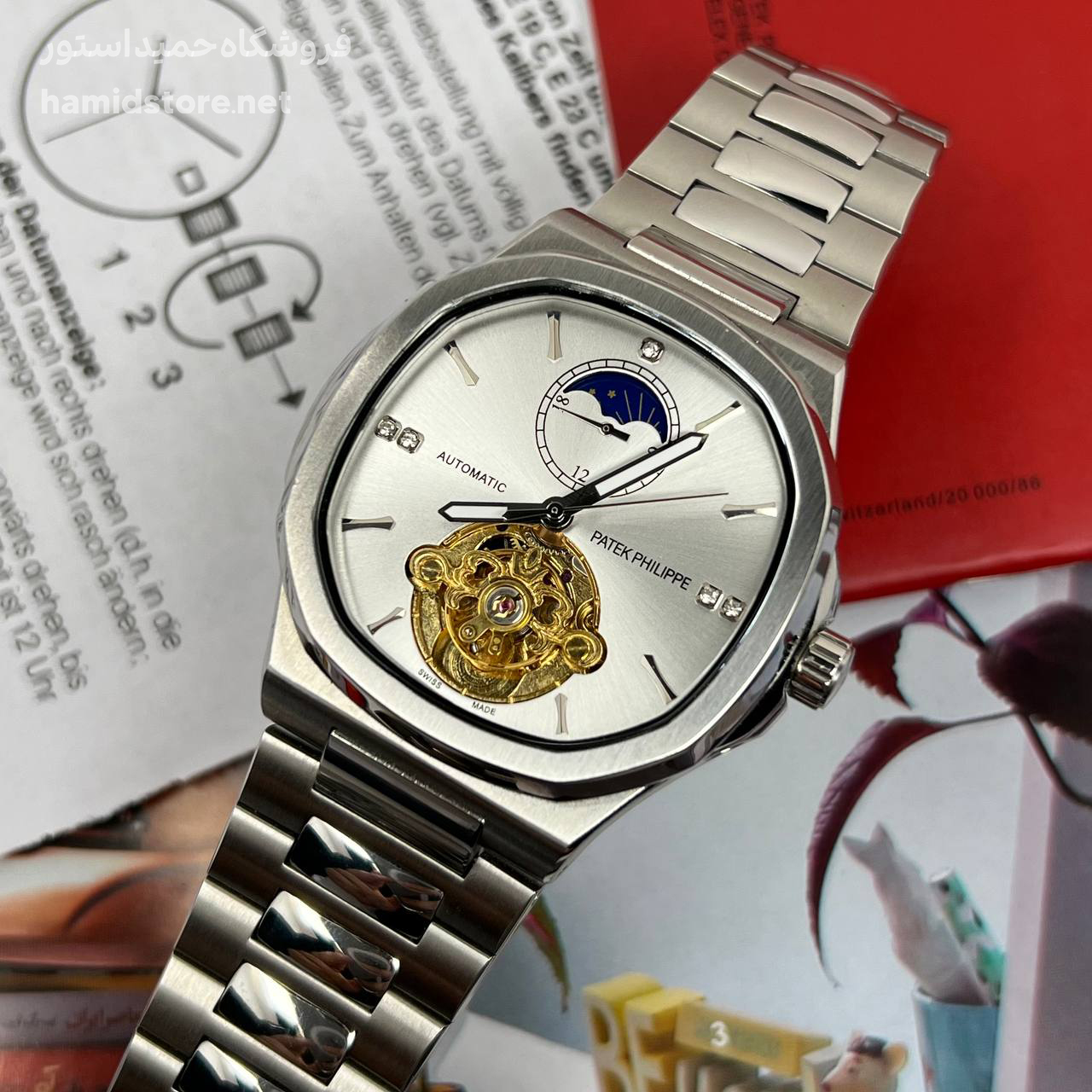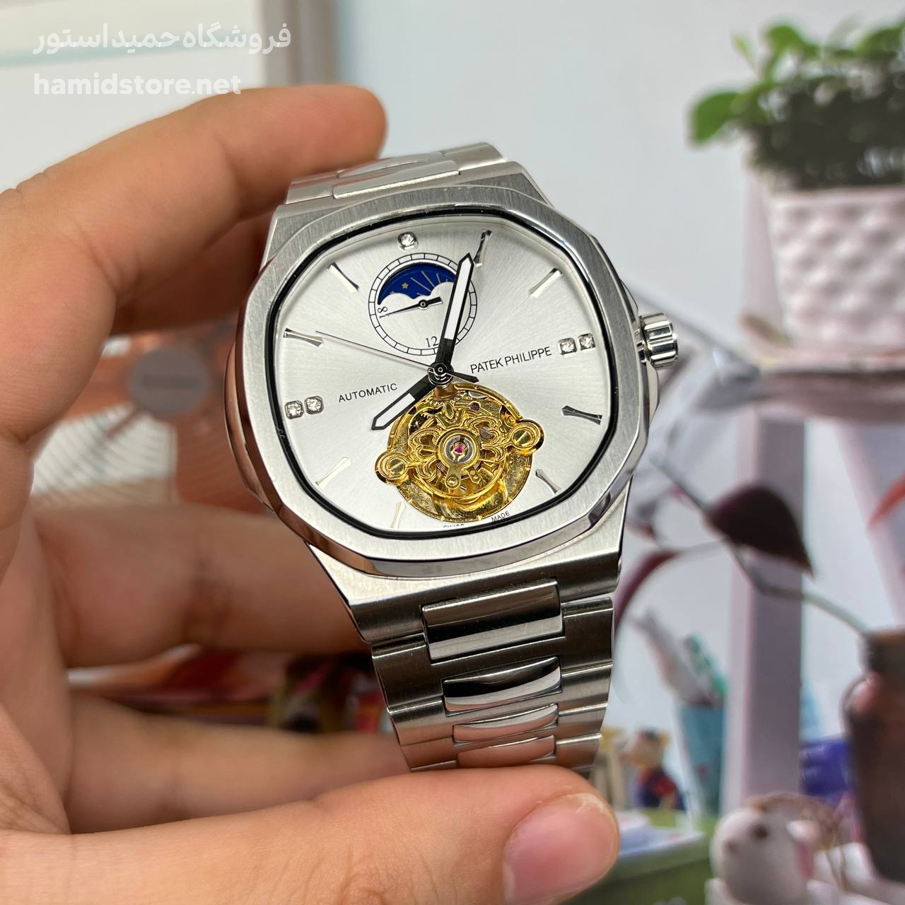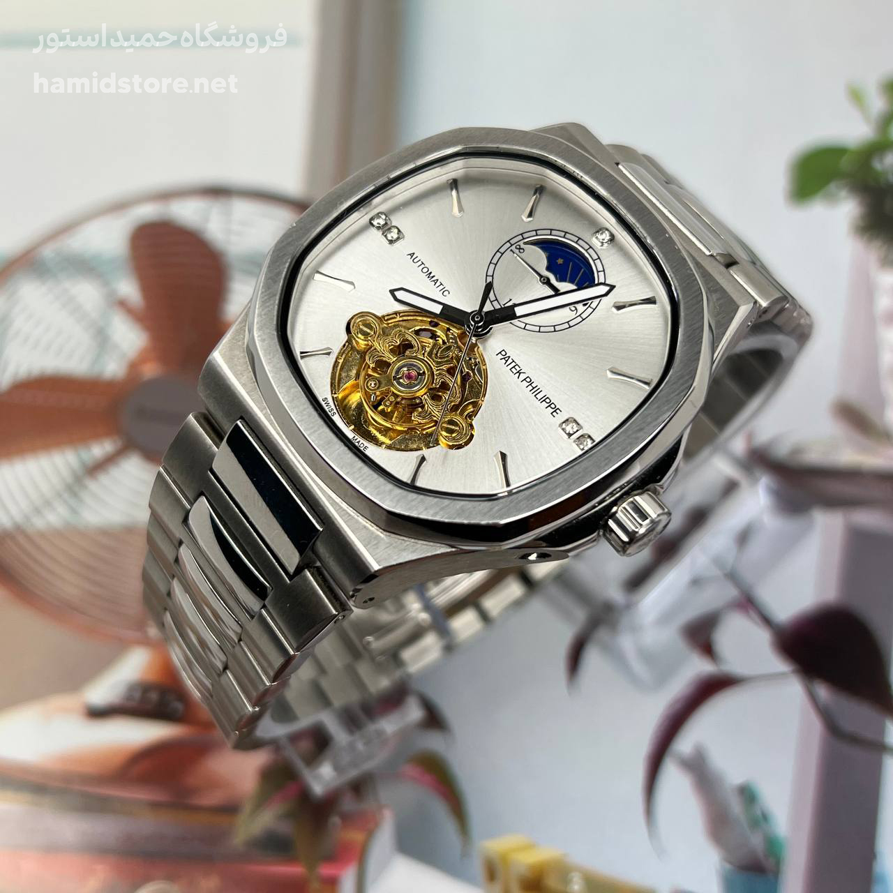 ساعت مردانه مارک پتک فیلیپ Automatic PATEK PHILIPPE موتور ژاپن اتوماتیک صفحه مربع کیفیت مستر