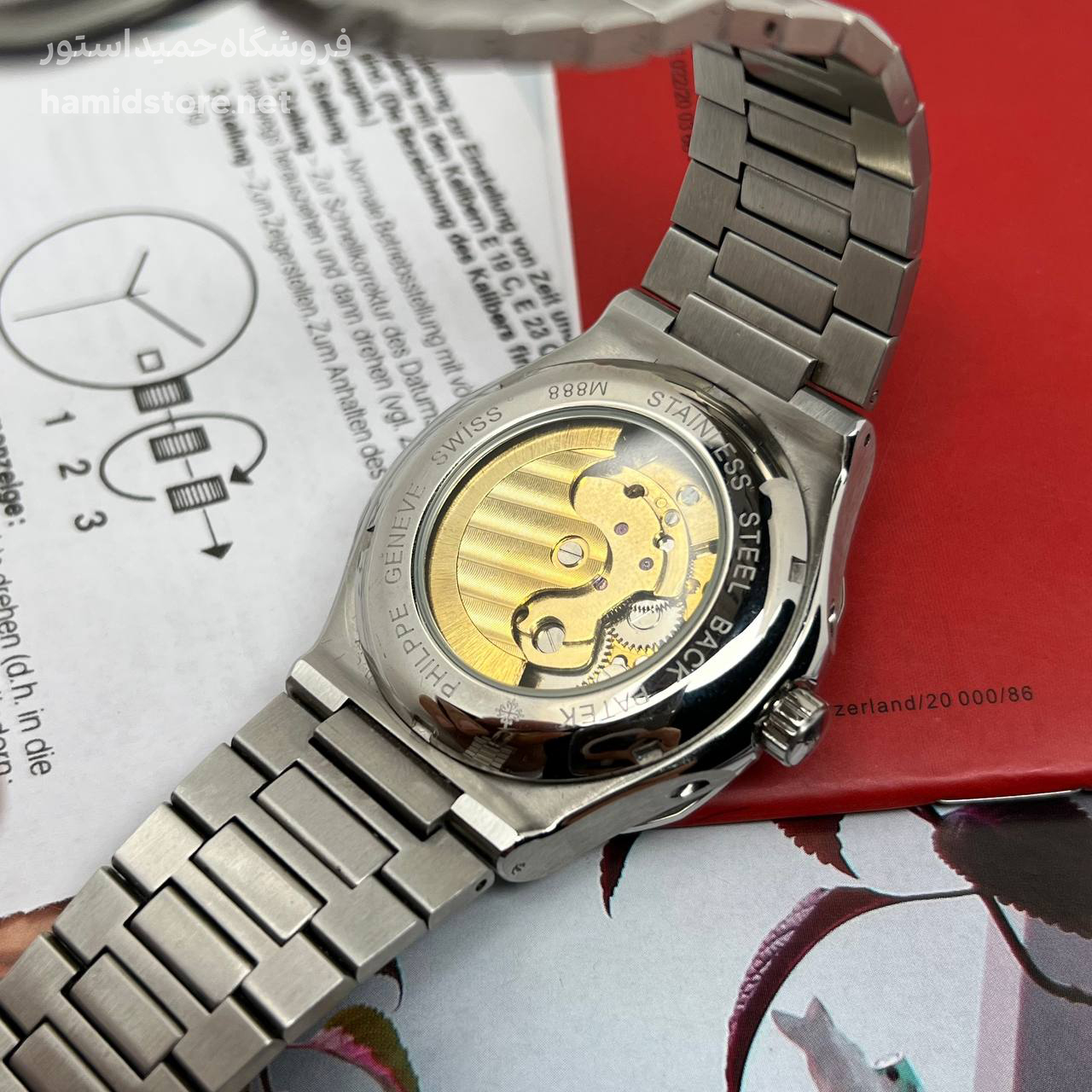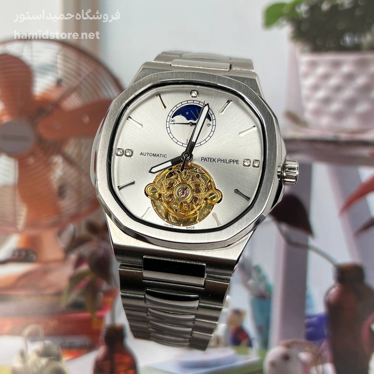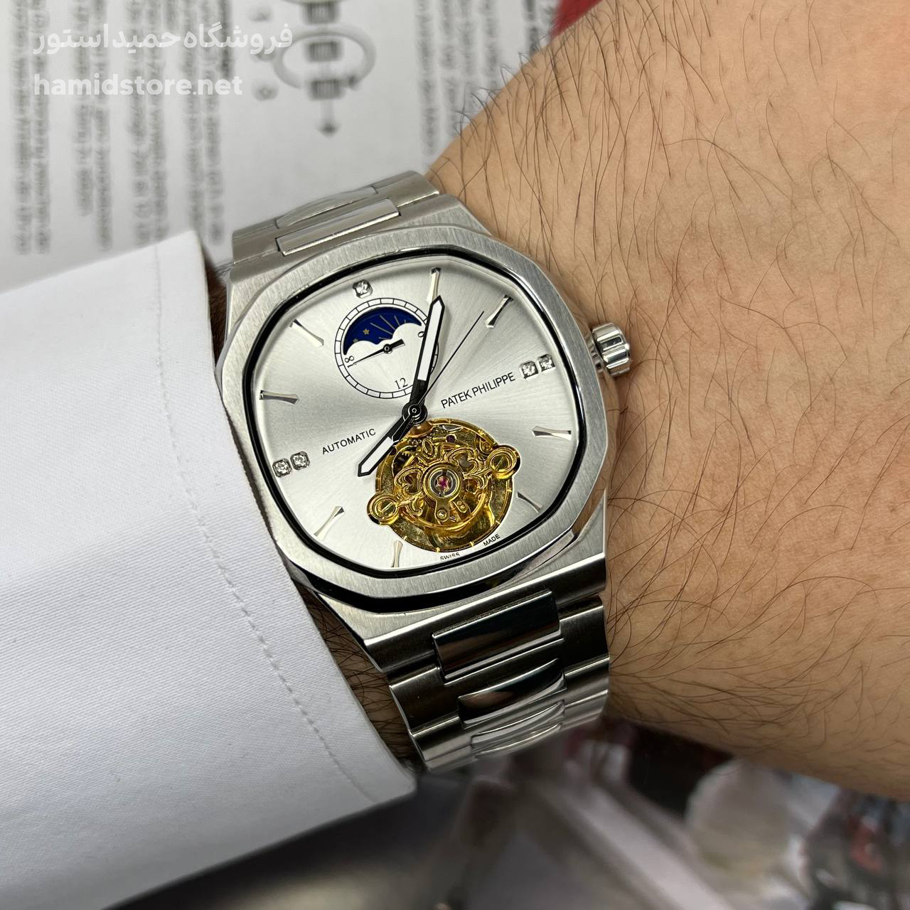 ساعت مردانه مارک پتک فیلیپ Automatic PATEK PHILIPPE موتور ژاپن اتوماتیک صفحه مربع کیفیت مستر