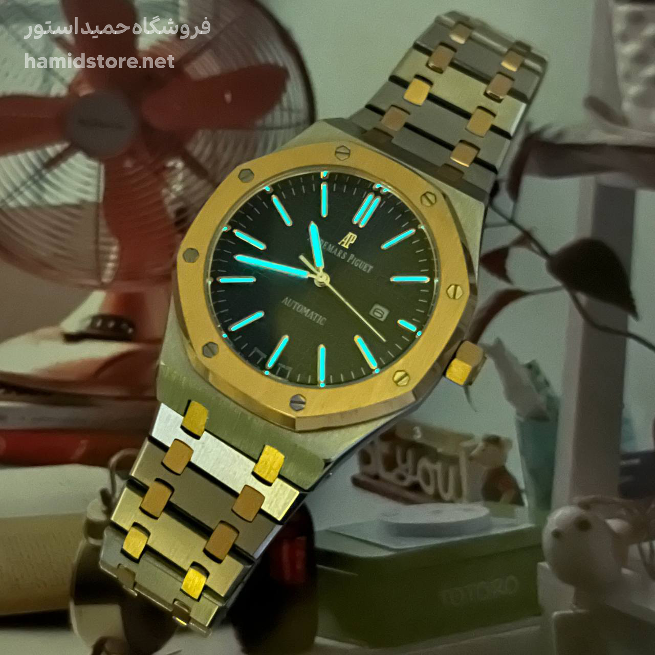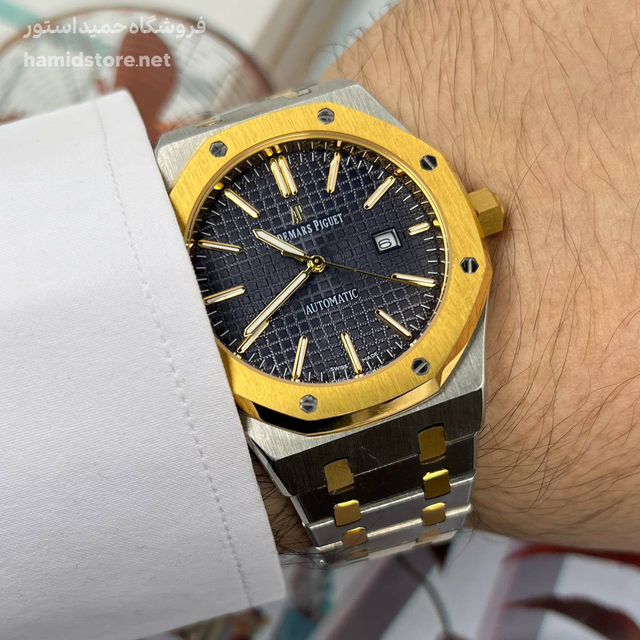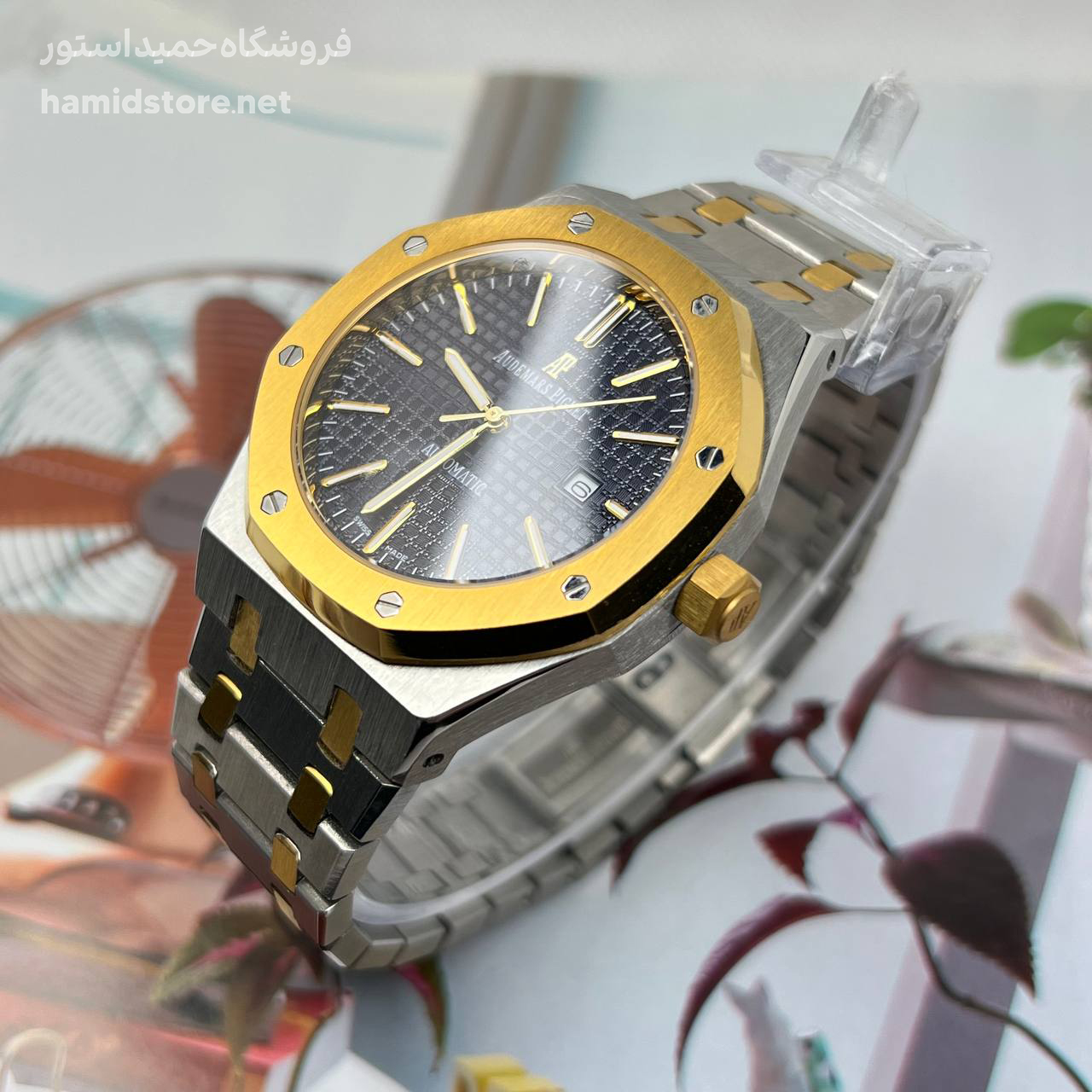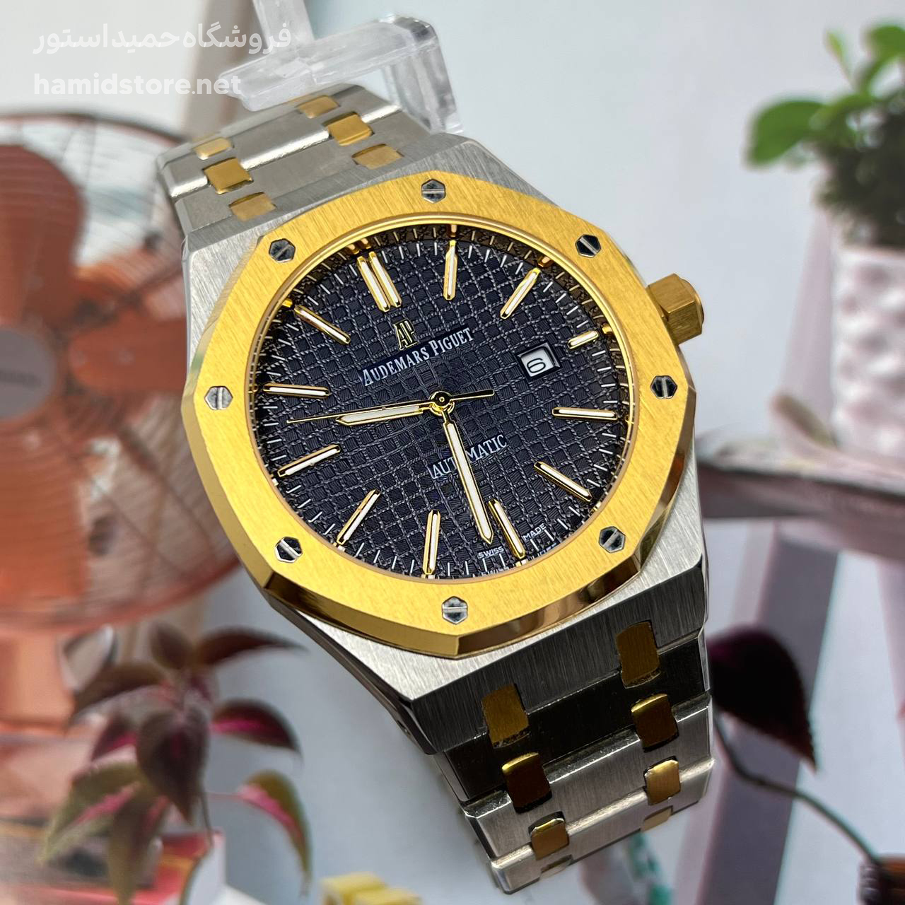 ساعت مچی مردانه AP تک موتوره استیل صفحه سرمه ای طلایی سیلور Audemars Piguet Royal Oak