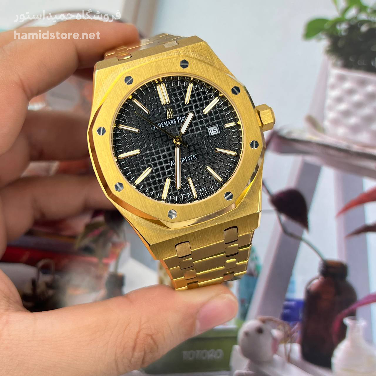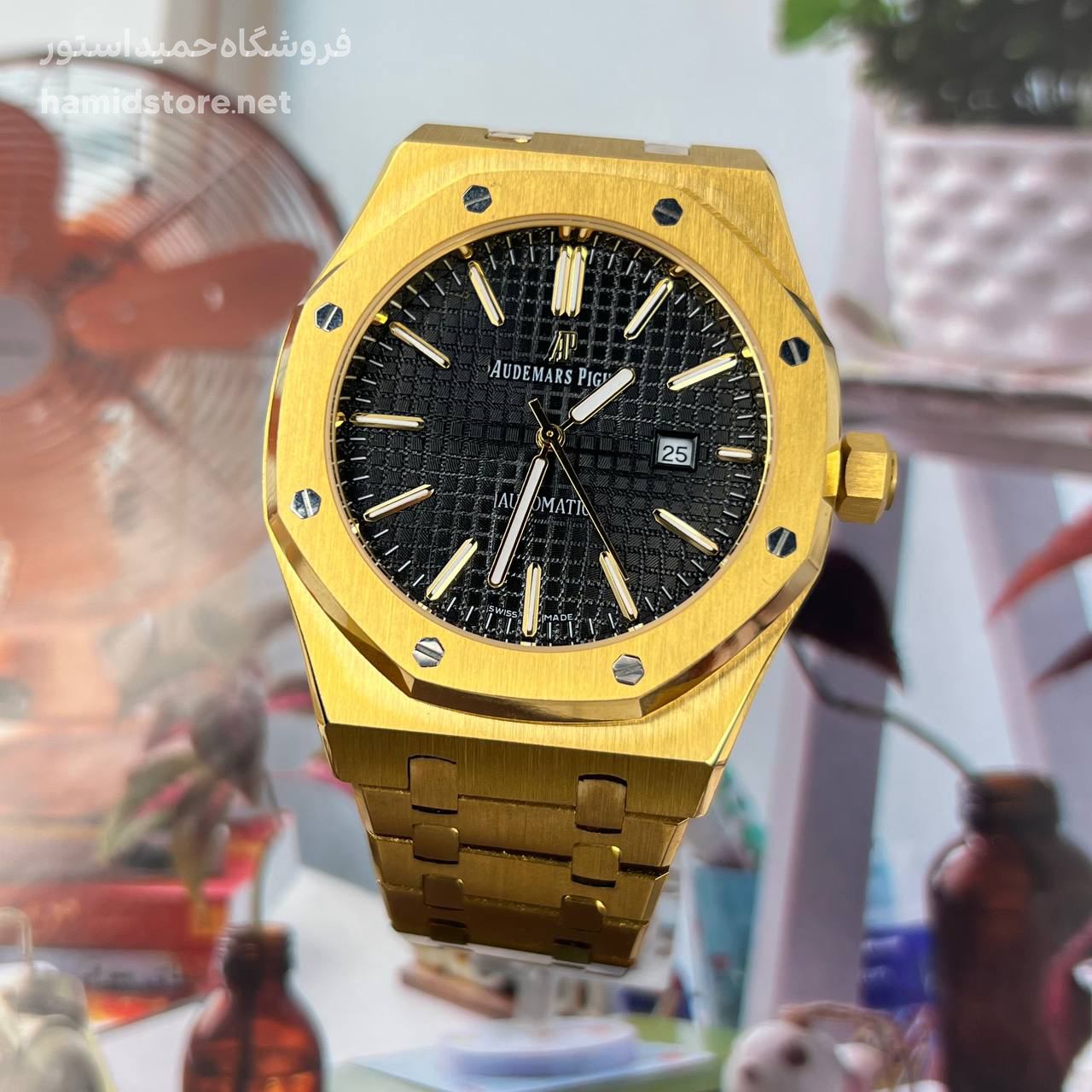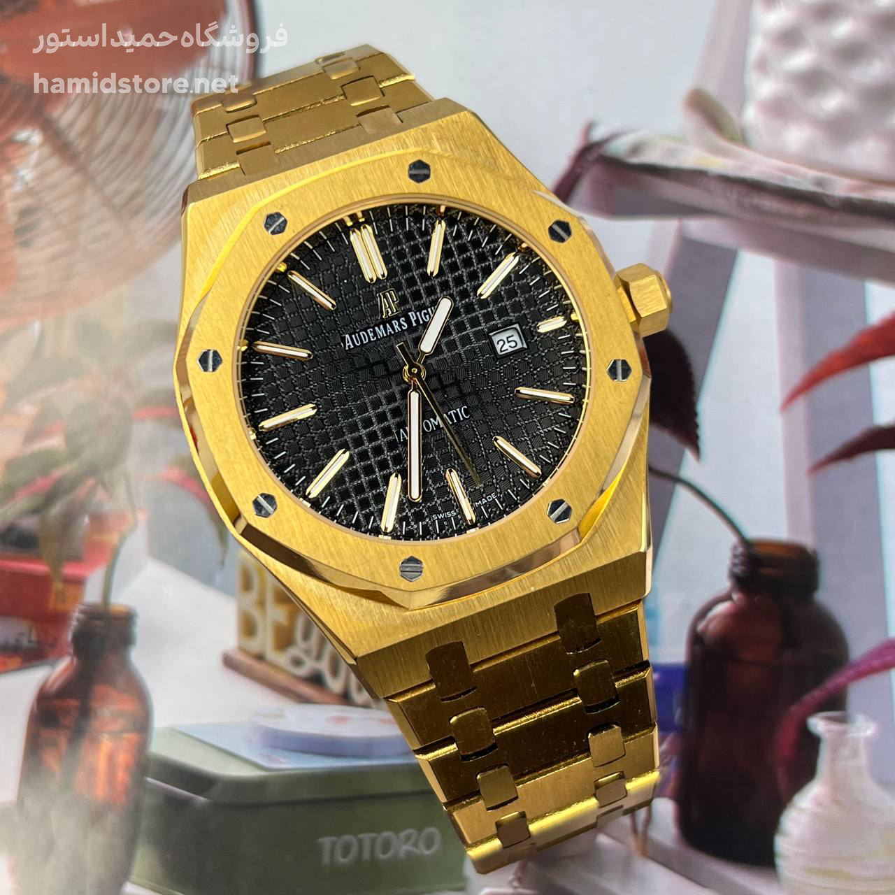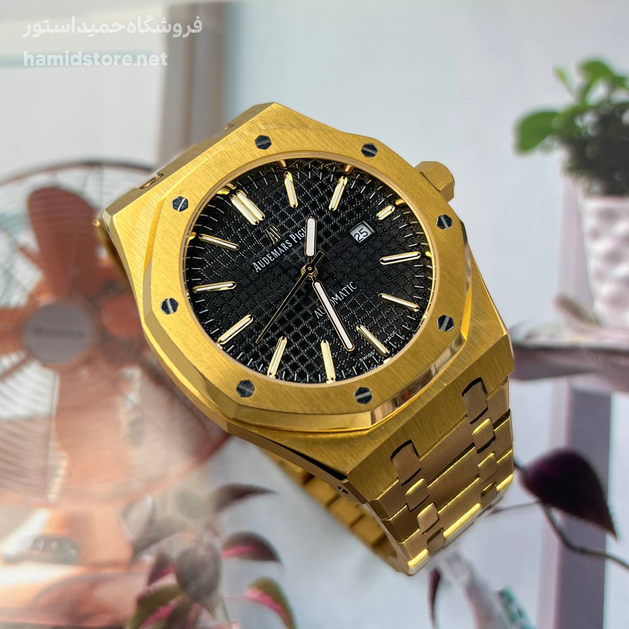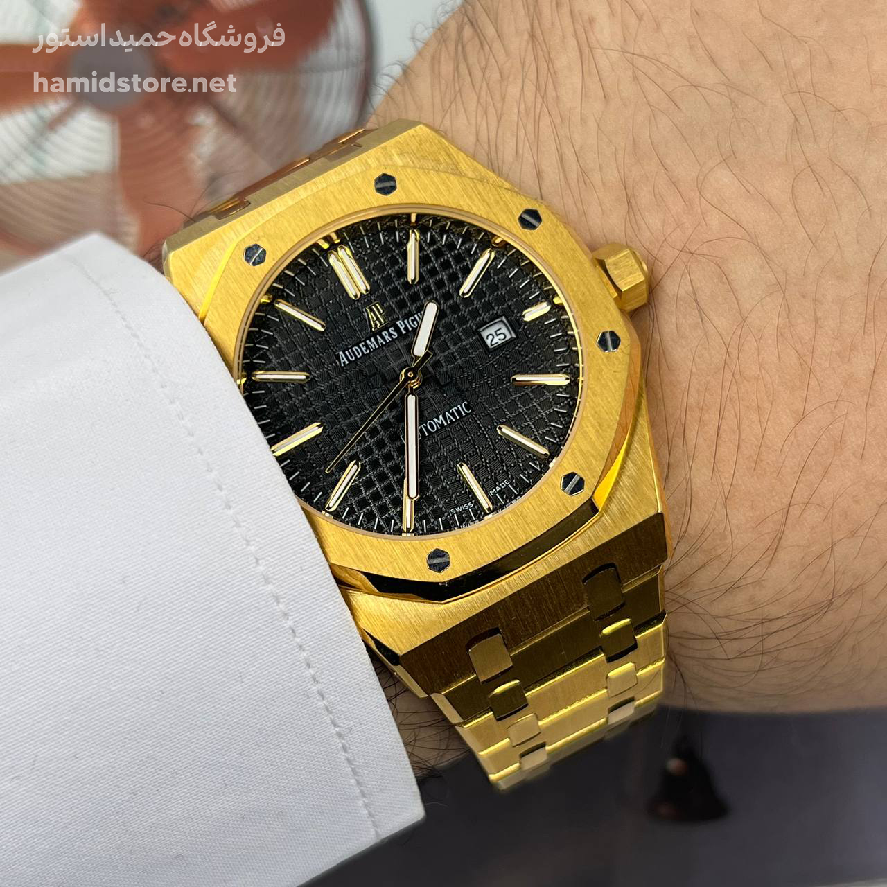 ساعت مچی مردانه AP اودمار پیگه سیلور Audemars Piguet طلایی صفحه مشکی