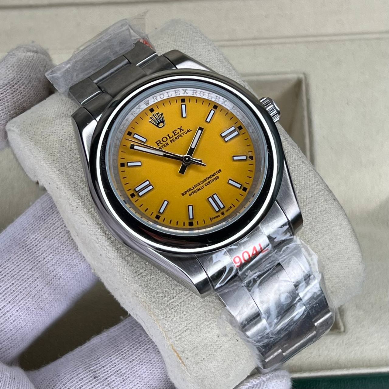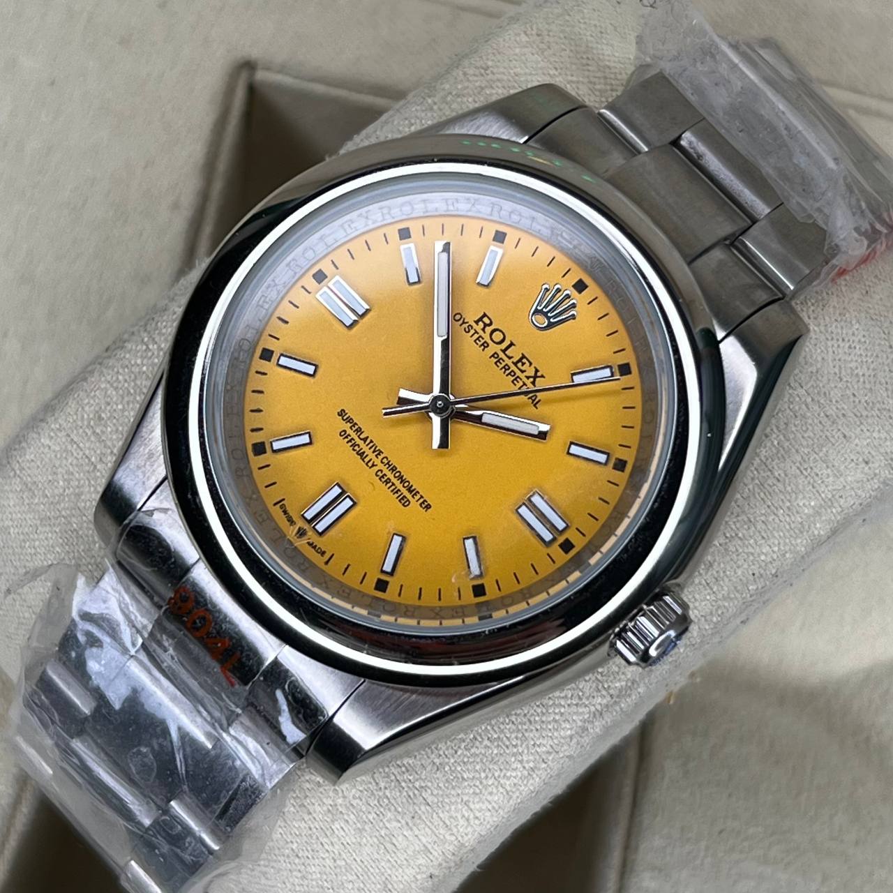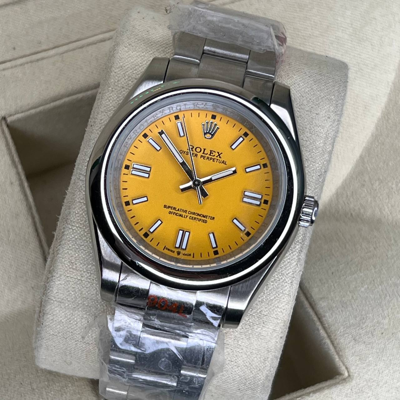 ساعت مچی مردانه و زنانه رولکس پرپچوال زرد موتور باطری Rolex Oyster Perpetual Silver Yellow